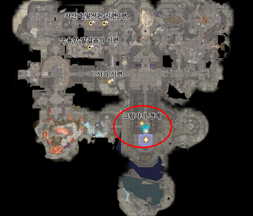 그 후 샤의 시련을 통과하여 그림자 불모지 입구까지 가면 된다.