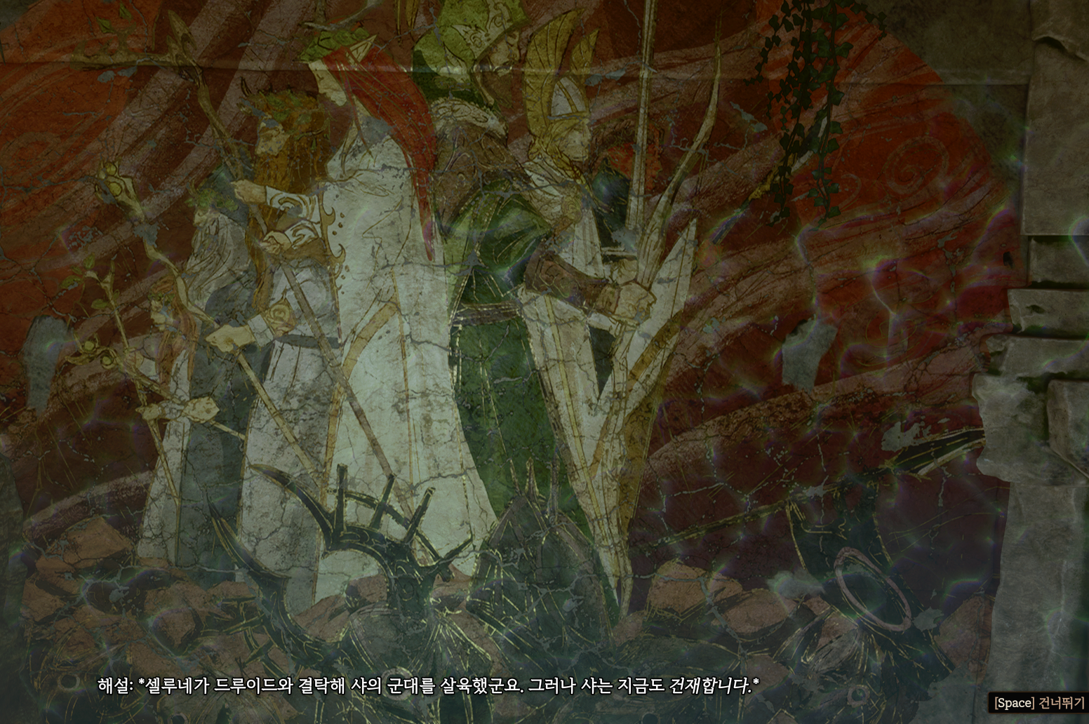 1막에서는 이정도의 정보만 습득할 수 있고, 2막에 있는 샤의 시련에서 더 많은 정보를 얻게 된다. 샤의 시련에는 섀도하트를 데리고 다니는 것이 더 풍부한 스토리를 즐길 수 있으니 참고하자.