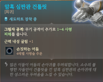 아무튼 암흑 심판관이 되면 샤가 반역자인 케더릭 토름을 제거하라는 명령을 내리면서 이 퀘스트는 종료가 된다.