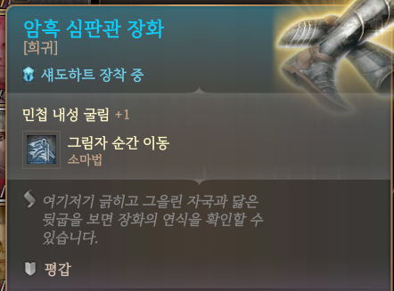 섀도하트와 1막을 여행하다 보면 암흑 심판관에 대한 다양한 정보를 얻을 수 있다. 게임을 하다 보면 자연스럽게 정보를 얻게 되니, 구체적인 공략은 올리지 않는다.