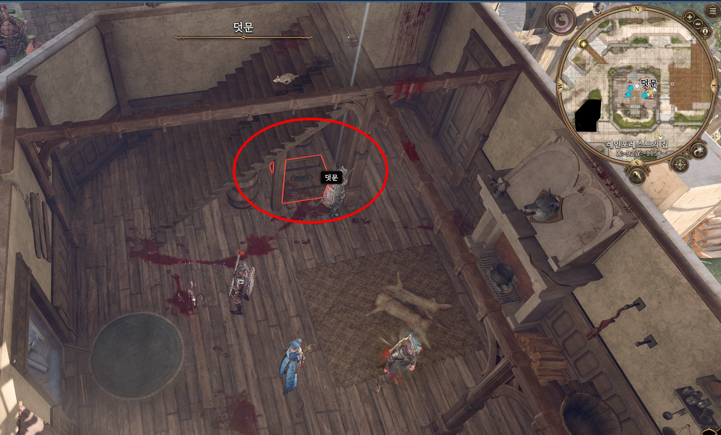 시체가 어지럽게 있을 텐데, 파밍 할 것은 없으니 덧문을 통해 내려가자.