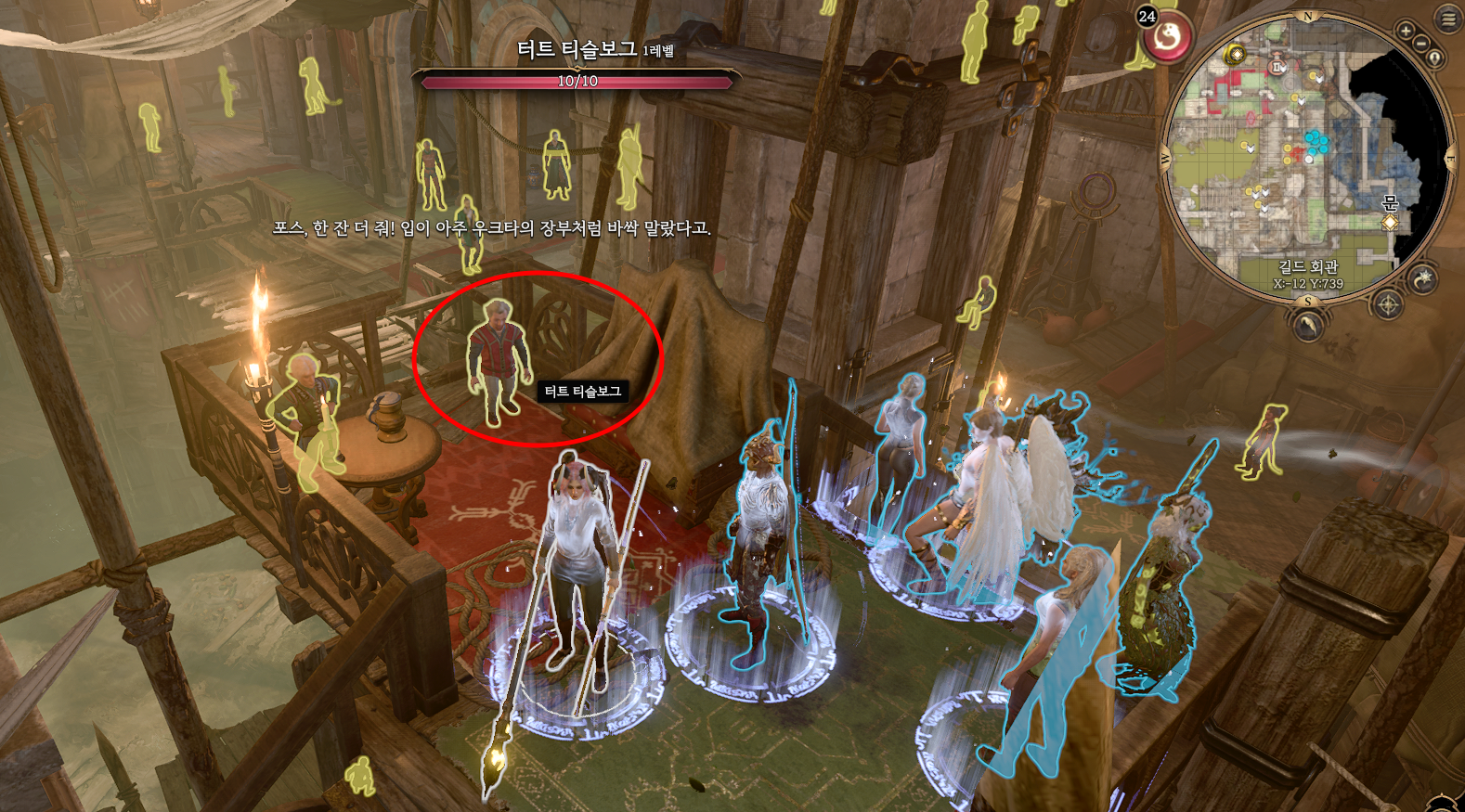 ② 길드 회관 내부에 있는 터트 티슬보그에게 대화하면 된다. 옆에 포슬트웨이트가 있고 술에 취한 상태이면 이야기를 들을 수 있을 것이다.