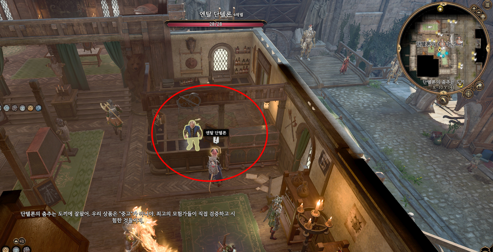 엔탈 단텔론과 대화를 하면 내 친구라면서 격식 차리지 말라고 이야기 하면서 바로 열쇠를 받을 수 있다. 엔탈 단텔론은 상당히 많은 무기와 장비를 판매하고 있으니 꼭 이용하고 가자.