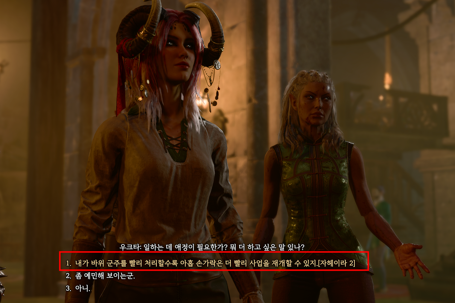 상점에 들어가서 엔탈 단텔론과 대화를 하면 된다. 이 퀘스트는 자헤이라의 동료 퀘스트이므로 자헤이라를 파티에 영입에서 진행하는 것이 대화도 더 재밌고 유리하게 진행된다.