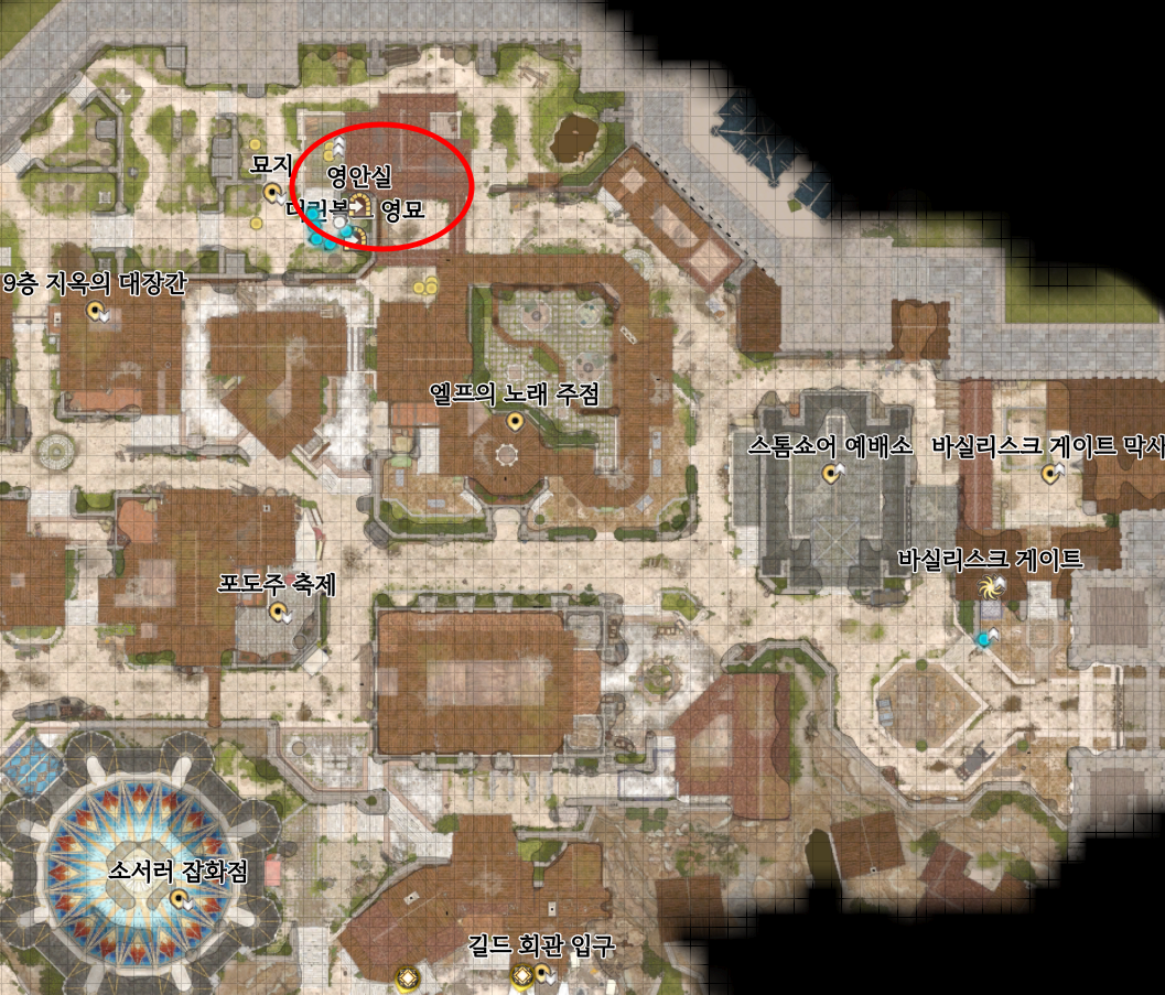 고대의 은신처는 우선 아랫도시 하수도로 가야한다. 하수도가 워낙 넓은데, 지도를 보고 잘 찾아가자. 이미 지하도시 폐허 순간이동진을 등록한 유저라면 빠르게 갈 수 있다.