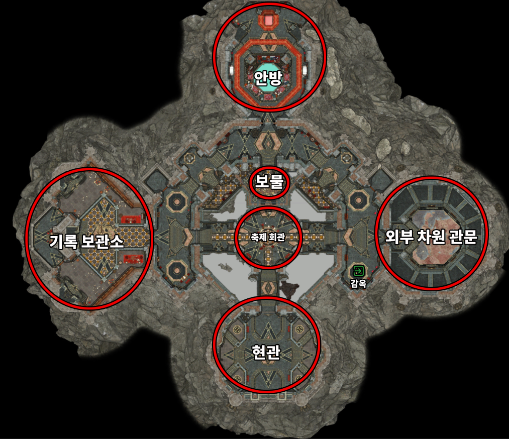 다만 안방의 정문도 역시 결계로 막혀 있을 텐데, 안방 초대장으로 해제할 수 있다. 안방 초대권은 기록 관리자를 생각 탐지로 생각을 읽고 베릴리우스인척 하면 받을 수 있다.