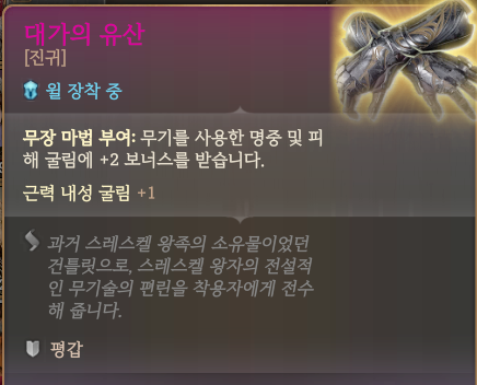 장갑 : 대가의 유산 or 지옥 어스름 장갑