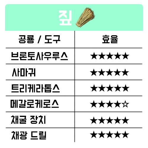 초반에는 곡괭이로 캐다가 그 다음에는 트리케라톱스, 브론토 순으로 채집하시면 됩니다.