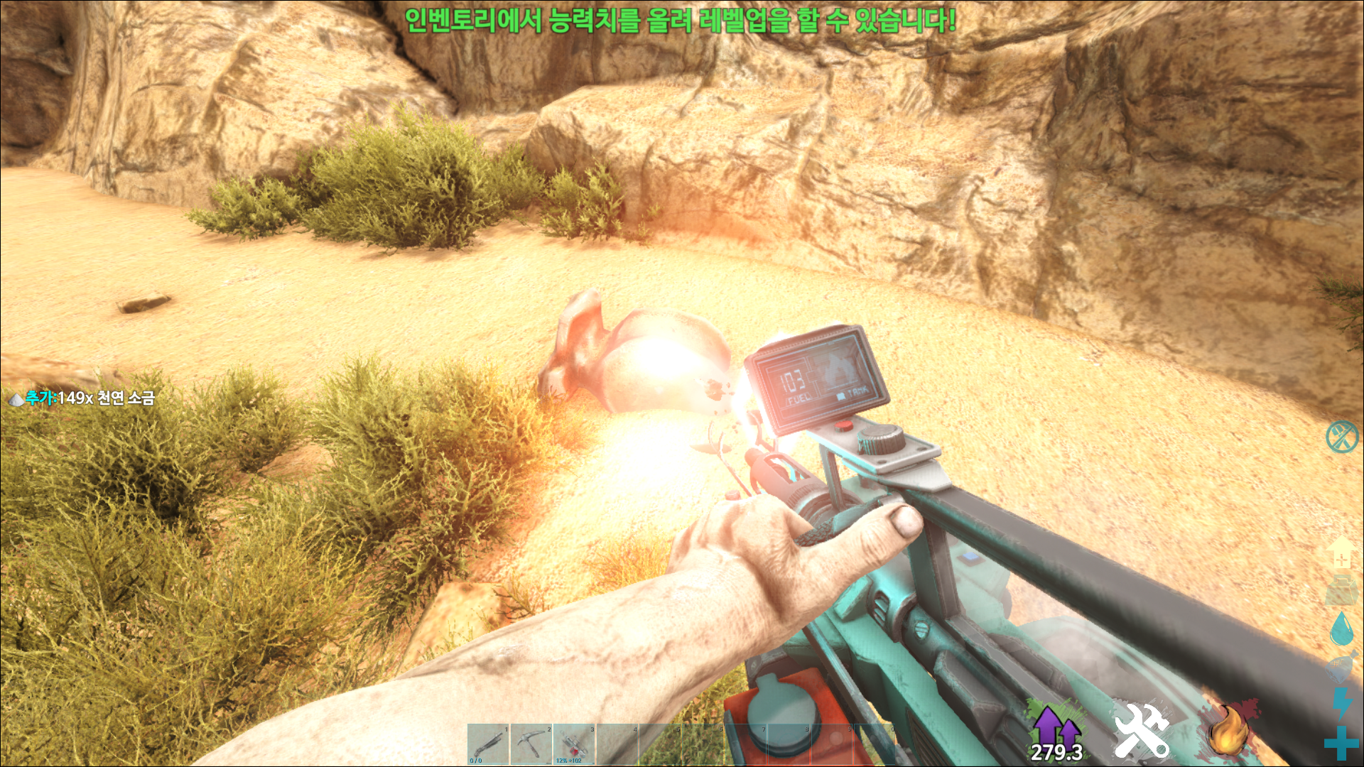 무심코 지나 갔을 뼈 화석이나 사막에 있는 소금 결정 덩어리를 캐면 나오는 천연 소금은 보관용 소금을 만드는 재료로 사용됩니다. 프리미티브 모드를 사용하지 않는 이상 사용할 곳이 별로 없죠.