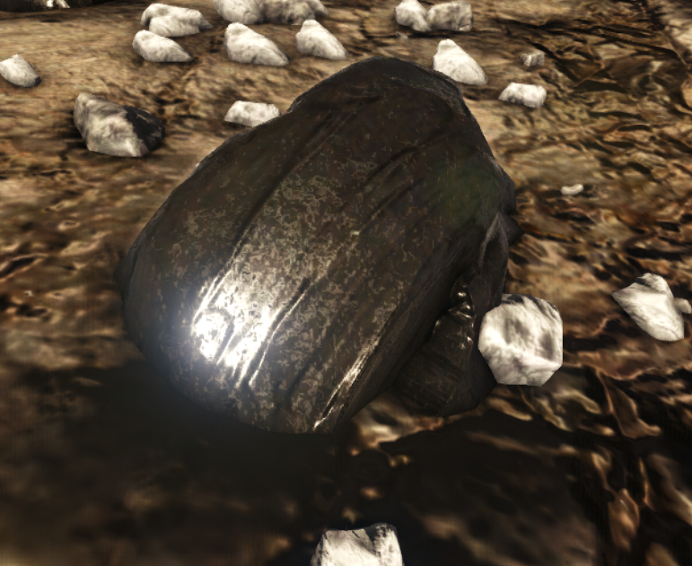 파밍 방법 : 처음에는 곡괭이나 도끼로 바위를 부수면 얻을 수 있으며, 도끼로 캐는 것이 더 많이 나옵니다. 나중에는 도에디쿠루스와 아르젠타비스를 이용하여 채집합니다.