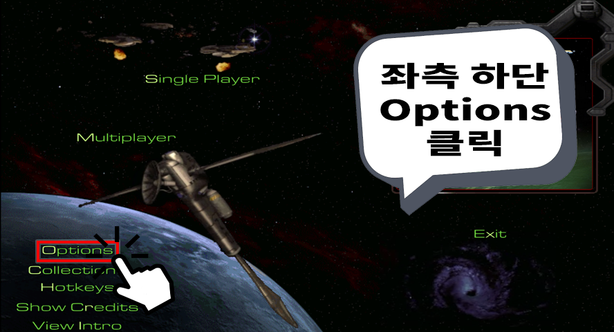 1. 스타크래프트를 접속하자. 그러면 메인 화면 왼쪽 아래에 있는 Options를 클릭하면 된다.