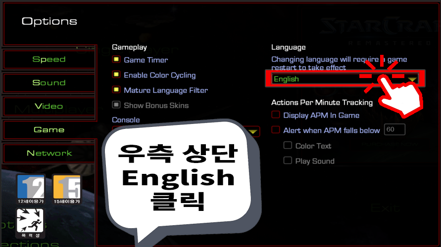 그런데 한글이 적용 되지 않는 경우가 있다. 제일 처음에 언급했지만 제대로 안 읽는 사람들이 있어서 다시 언급하지만 스타크래프트 리마스터가 있어야 한글이 적용되니 잊지 말자.