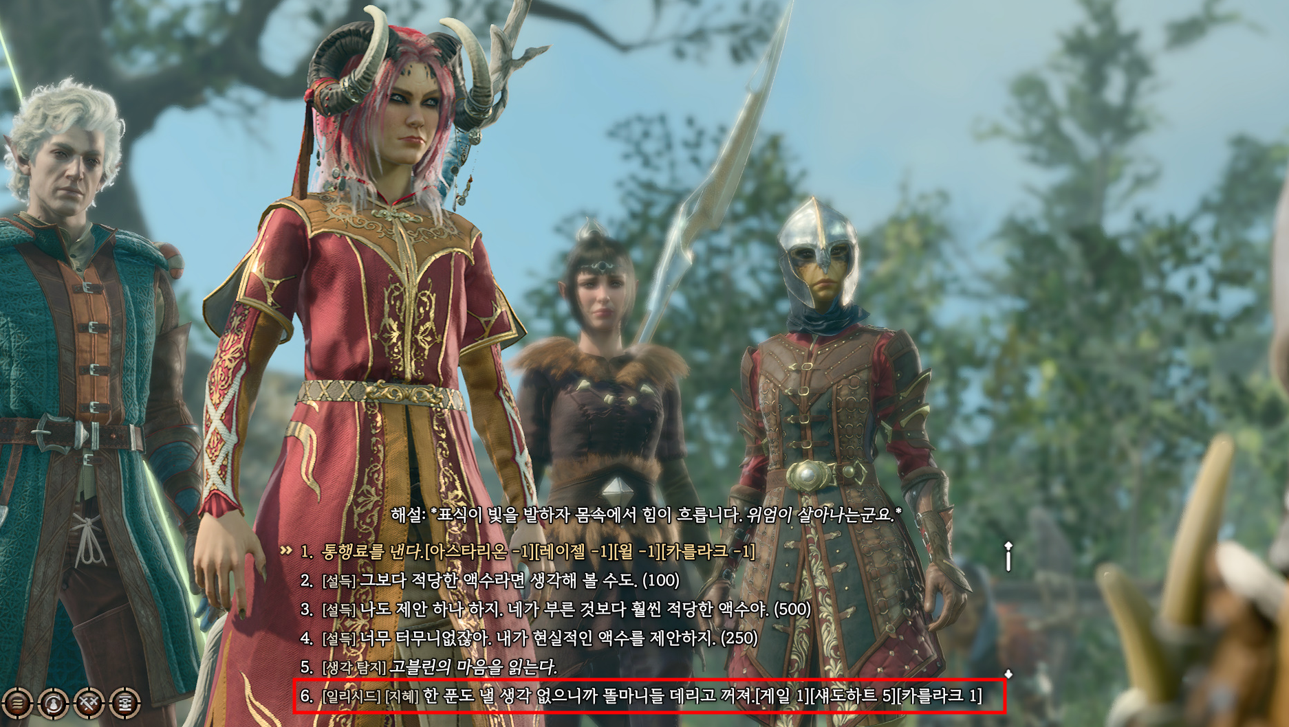 우선 가장 쉬운 고블린들을 전투 없이 몰아내는 방법은 일리시드를 선택해서 명령을 내려서 고블린 무리들을 몰아내는 것이다.