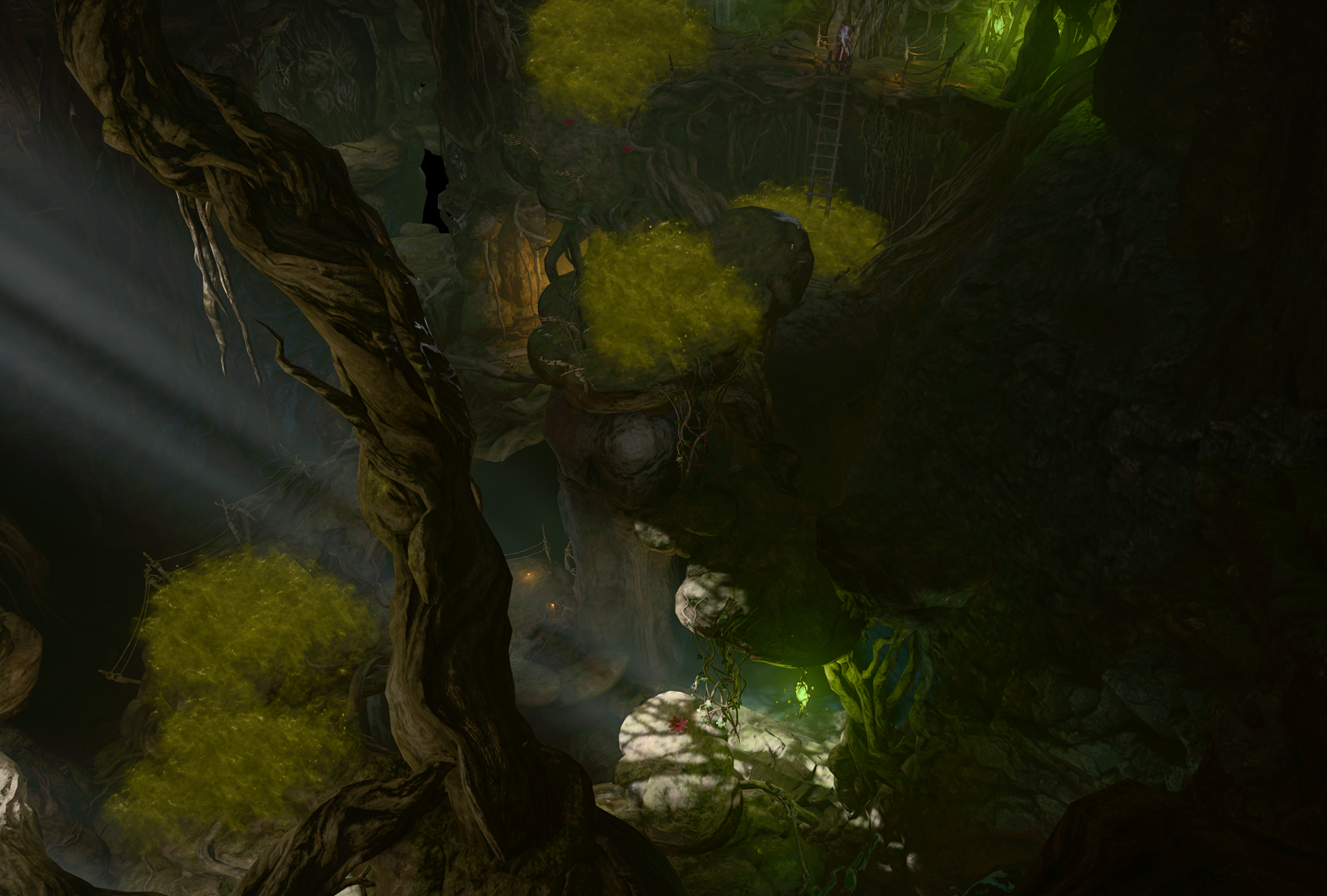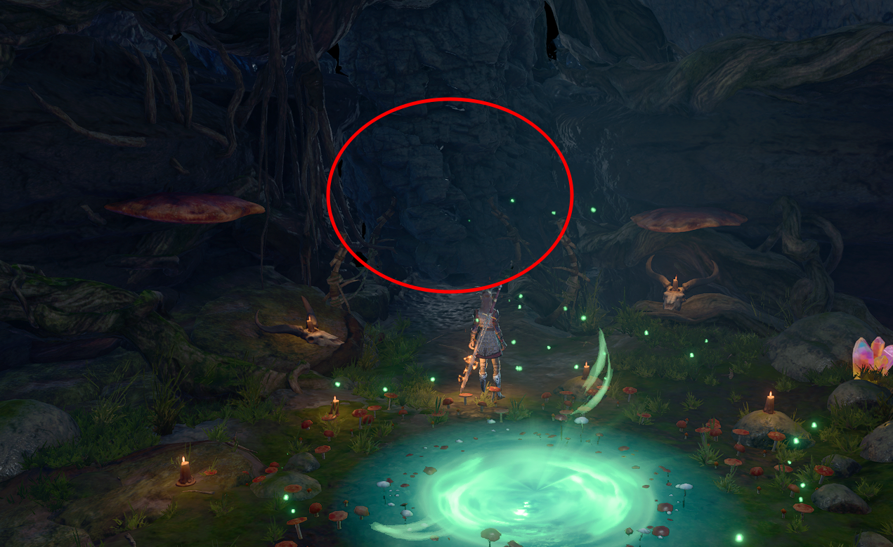 버섯 원진을 통해 언더다크를 왔는데, 사방이 막혀서 당황할 수 있다. 하지만 환각 때문에 안 보이는 것이니 벽으로 이동하면 통과할 수 있다.