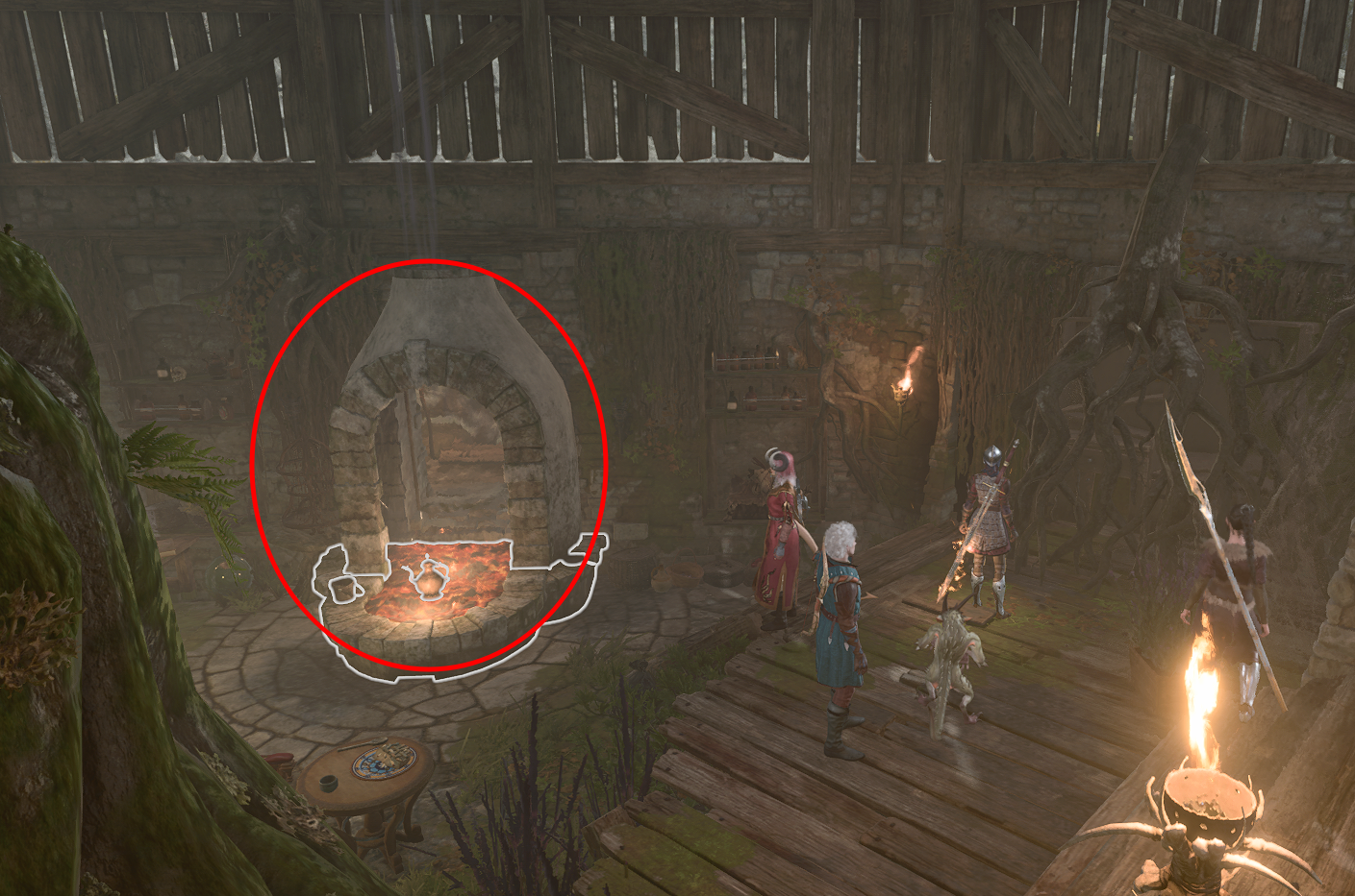 그리고 벽난로에 입장하기 전에 옹이투성이 찻집[에텔 집]을 한 바퀴 돌면서 파밍하고 가면 된다. 신속 물약, 동물 대화 물약, 회복 물약 등등 물약이 대부분이다.