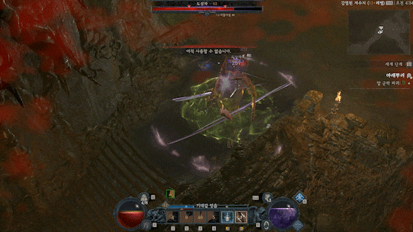 디아블로4의 도살자는 레벨에 상관없이 많은 체력과 높은 공격력을 바탕으로 유저를 공격하는데 패턴은 그리 다양하지 않다.
